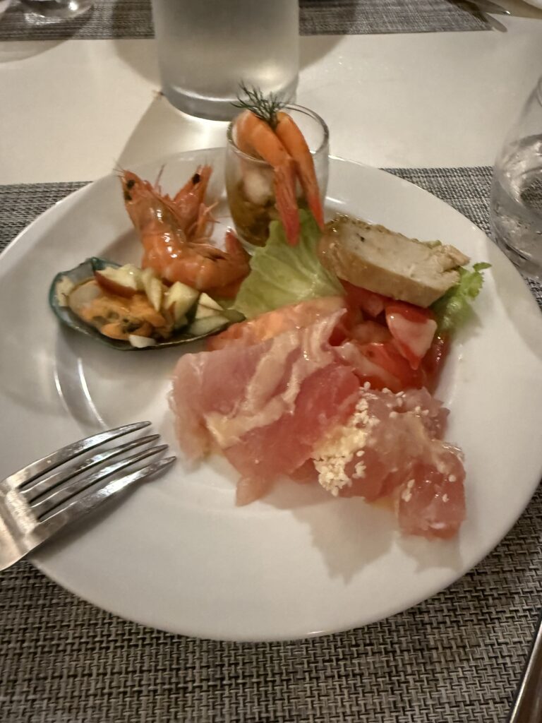 目の前で焼いてくれるステーキなども、お肉の種類も3種類くらいとお魚も選ぶことができてこれはよかったです!